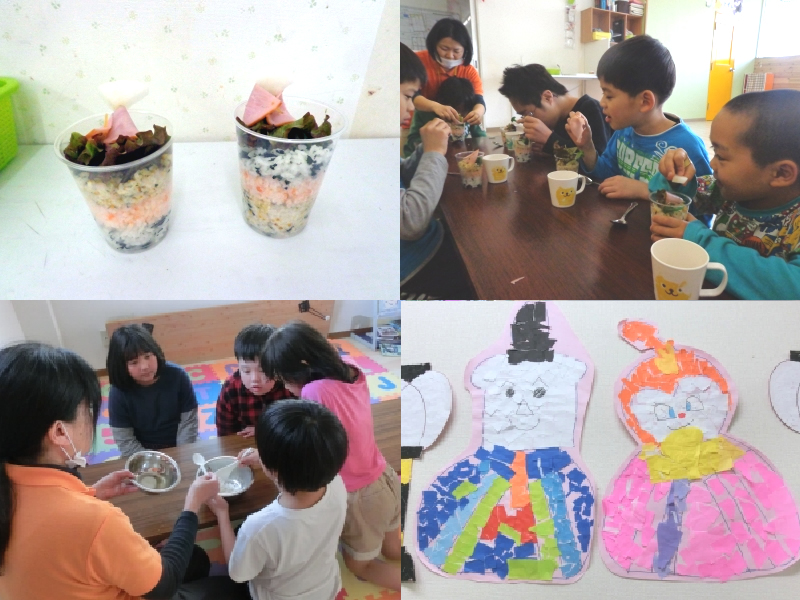 ひな祭りにちなんだ調理をして、お祝いです。